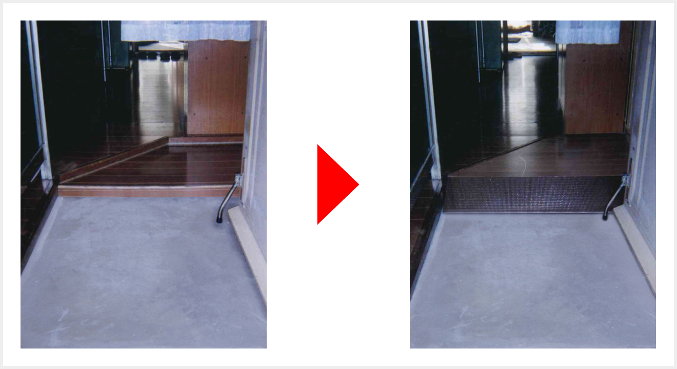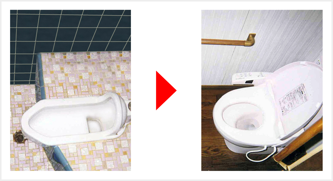 施工例 和式を洋式に変更 手すりの取り付け 開き戸を引き戸に変更 段差をなくす 要介護(支援)認定を受けた方が、上記のような工事をする場合、 最高で20万円の9割分(自己負担額は1割の2万円)が支給されます。 まずはご相談下さい。 相談無料 072-238-4646
